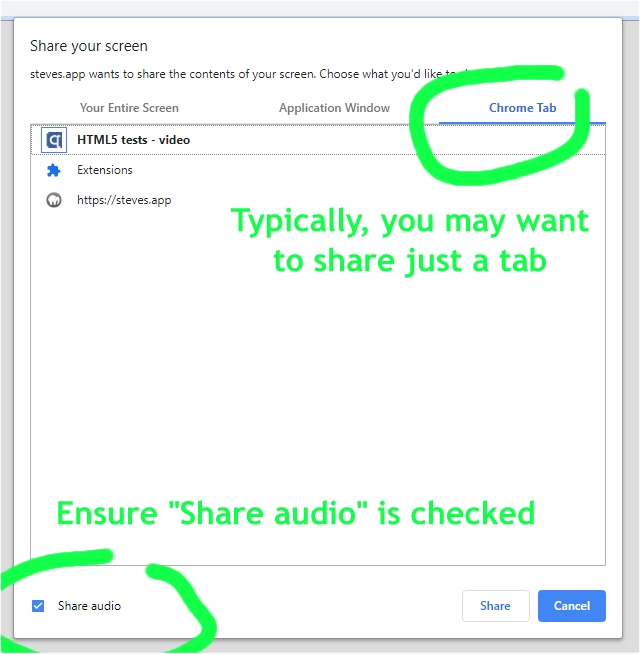 (Firefox does not support audio sharing.)